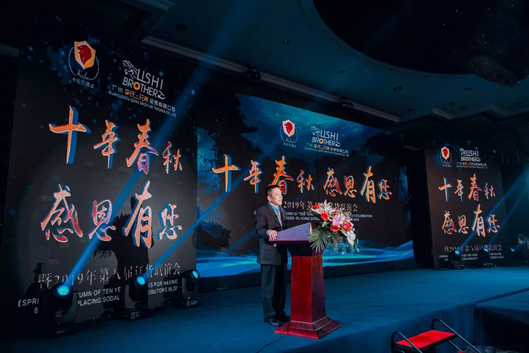 董事长李桂彬先生上台致词时,先向关心和支持公司发展的各级领导以及来自全国各地的客户表示衷心的感谢,十年来,卡拉尔一直砥砺奋进,如今能取得这些傲人佳绩,离不开大家的信任与支持,并表示虽然目前酒类市场整体态势较为低迷,但卡拉尔不会畏惧困难,仍将执着奋进、风雨兼程!