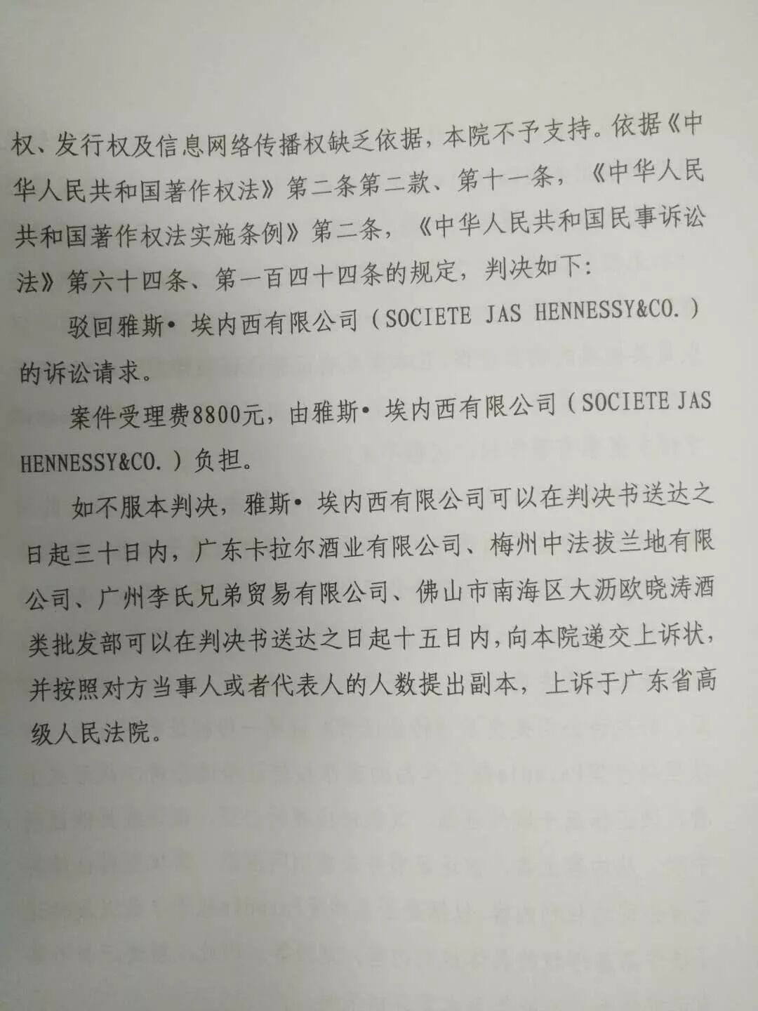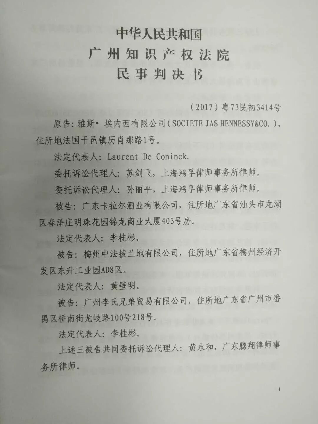 在长达近五年的取证和诉讼后,近日,广州知识产权法院做出了终审判决,驳回雅斯·埃内西有限公司(既轩尼诗公司)的诉讼请求,本案广东卡拉尔酒业有限公司取得了最终的胜利。